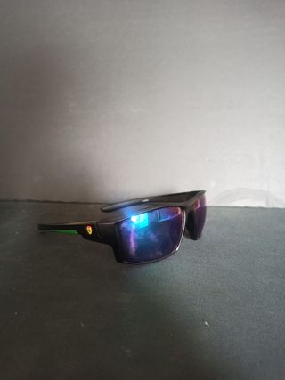 😎 Gafas de sol estilo Ferrari. - Montura negra. - Lentes con reflejos multicolor. - Detalle del logo de Ferrari en el lateral. 🏎️ Look deportivo y moderno. ✨ En buen estado. 📦 Envío rápido.