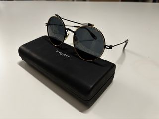 Elegantes gafas de sol Givenchy con un diseño distintivo. - Montura redonda con detalles dorados. - Lentes con estampado de estrellas y monograma de la marca - Incluye funda protectora, estuche y caja original. Solo vendo en persona en Málaga o Madrid