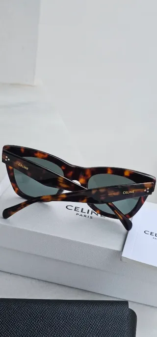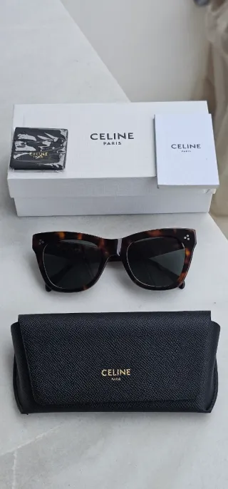 Elegantes gafas de sol Céline con un diseño moderno y atemporal. Perfectas para añadir un toque de estilo a cualquier atuendo. - Montura con estampado de carey. - Lentes oscuras. - Incluye funda protectora negra con logo dorado de Céline. - Caja y accesorios originales