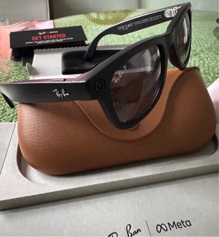 Gafas de sol Ray-Ban WayFarer de segunda generación con tecnología Meta y lentes polarizadas. El color principal es negro con detalles marrones. - Lentes polarizadas para mayor claridad. - Diseño WayFarer icónico. - Integración con tecnología Meta.