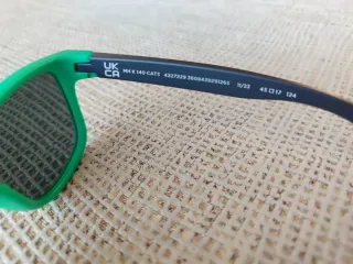 Gafas de sol infantiles de Decathlon con montura verde. Ideales para niñ@s de 4 a 8 años aproximadamente. - Montura de color verde y patillas en negro. - Lentes oscuras con protección solar categoría 3. - Solidez: Cristales de policarbonato de plástico de gran resistencia. - Sujeción: La forma de las patillas asegura la sujeción de las gafas en la cara. - Muy ligeras: pesan 20 gramos. - Protección solar: Cristal categoría 3 - filtro 100% anti-UV: ideal para tiempo soleado.