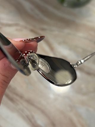 Gafas de sol Ray-Ban Aviator en color plateado con lentes grises oscuro. Se incluyen las gafas y su estuche. Las gafas están en buen estado y parecen estar impecables. - Montura plateada. - Estuche protector incluido y paño de limpieza. - Sin rayaduras en cristales