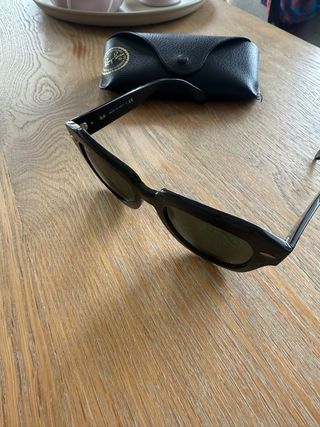 Gafas de sol Ray-Ban con montura negra. - Diseño clásico y versátil. - Lentes oscuras para protección. - Logo de Ray-Ban en la patilla.