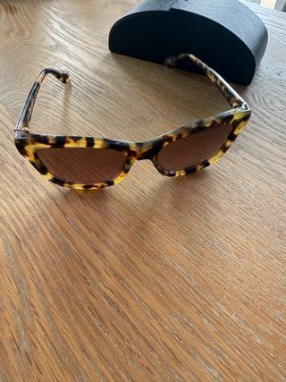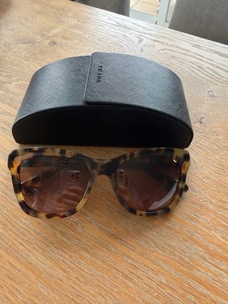 Se venden gafas de sol Prada originales en color marrón, con su funda protectora. - Diseño moderno y elegante. - Incluye funda rígida para guardarlas.