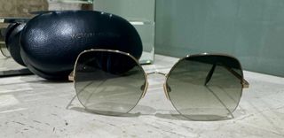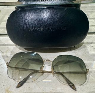 Elegantes gafas de sol de la marca Victoria Beckham. - Montura en tono dorado. - Lentes con degradado en verde y metal dorado. En muy buen estado. Con su funda.