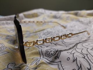 Gafas de sol con un diseño moderno y elegante. - Montura de acetato negro. - Detalles metálicos en las esquinas. - Las entrego con funda y estuche no de la marca, pero los protegen igualmente.