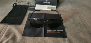 Gafas de sol Kingseven, polarizadas, elegantes y modernas. - Incluye estuche rígido y funda protectora. - Lentes oscuras, estilo aviador. - Perfecto estado.