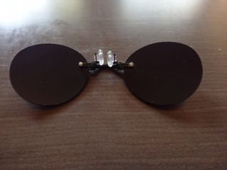 Gafas de sol estilo Matrix con lentes redondas. - Diseño sin montura. - Puente nasal con detalle. - Lentes oscuras.