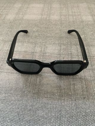 Gafas de sol con un diseño moderno y elegante. Son nuevas, no tienen funda. - Montura robusta y estilizada. - Lentes oscuras para una protección óptima.