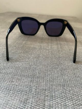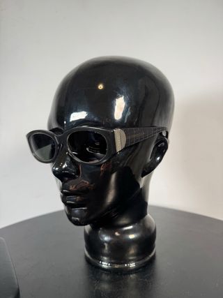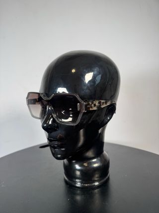 Elegantes gafas de sol con un diseño moderno y llamativo. Perfectas para añadir un toque de estilo a tu look. Son nuevas, no tienen funda. - Montura negra. - Detalles decorativos.