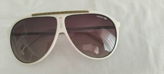 Gafas de sol de la marca Lacoste con un diseño moderno y elegante. - Montura de color blanco. - Lentes de color marrón degradado.