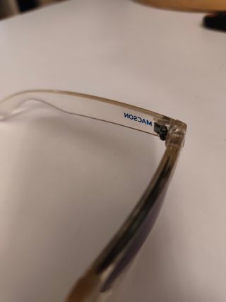 Gafas de sol unisex de la marca Macson. Diseño moderno y versátil. - Montura transparente. - Lentes con tinte azulado.