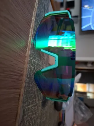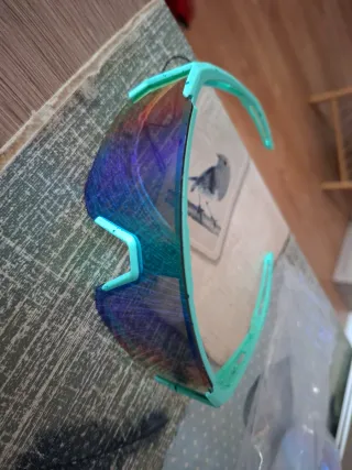 Gafas de sol con un diseño deportivo y moderno. La lente espejada ofrece un acabado llamativo. - Montura en color verde azulado. - Lente con efecto espejo multicolor.