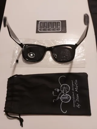 Gafas de sol exclusivas de Dani Martín. - Diseño único. - Nuevas a estrenar. - Montura con estampado de bicicletas. - Lentes oscuras. - Incluye funda protectora. -Gafas descatalogadas en tienda on line.
