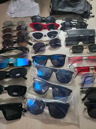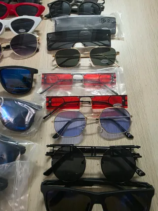 El pack incluye 27 diferentes gafas de sol Fundas y bayetas Nuevas a estrenar Son uv400 Ideal para vender!