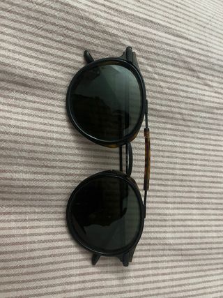 Gafas de sol Persol con montura negra y lentes grises. - Montura de acetato. - Precio negociable. - Lentes con protección UV. - Diseño elegante y moderno.