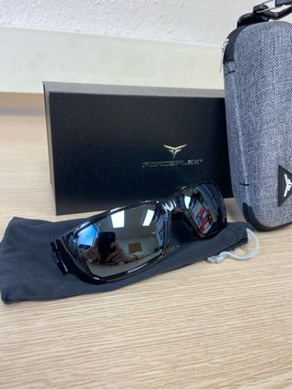 Gafas de sol de la marca Forceflex con un diseño flexible. - Montura en color negro. - Incluye funda rígida gris y bolsa de tela negra.