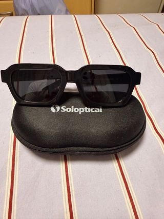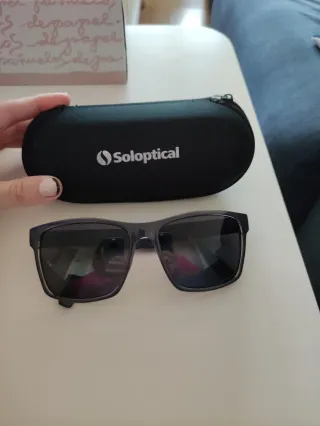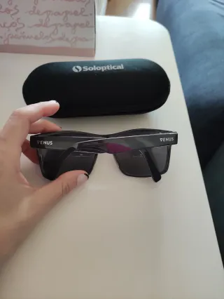 Gafas de sol de Soloptical. Están como nuevas, usadas muy poco. Cuestan 95 euros. Las vende mi hija porque se las regaló su ex pareja y no las quiere.. Son unisex, como la mayoría de sus modelos. Se venden a la mitad, una ganga!! Gafas de sol Polarizadas Venus Icon modelo atemporal, con forma rectangular y fabricadas en pasta. Estas gafas tienen un calibre 55mm puente 19 mm y unas varillas de 147mm. Incluye funda protectora.