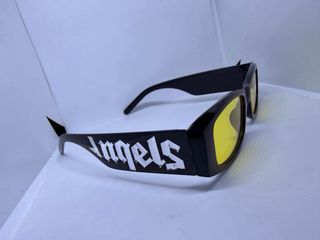 Gafas de sol con un diseño moderno y lentes amarillas. - Montura negra. - Lentes de color amarillo. - Estilo llamativo.