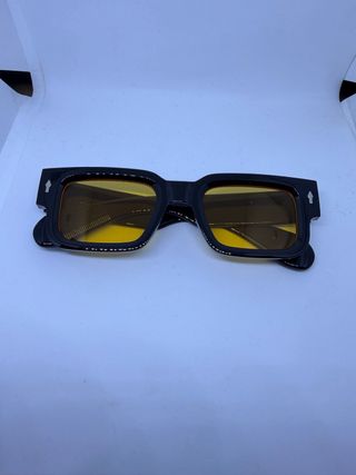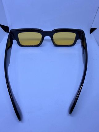 Gafas de sol con montura negra y lentes amarillas. - Diseño cuadrado. - Detalle de costura blanca en la montura.