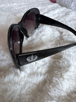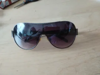 Gafas de sol con lentes oscuras y patas de metal. Gafas con marcas de uso. Solo se realizan envíos 📦.