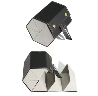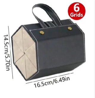 Práctico estuche para guardar varias gafas de forma organizada. Su diseño plegable lo hace ideal para llevarlo contigo. - Exterior en material sintético negro. - Interior en material sintético gris. - Cierre con broches metálicos. - Diseño hexagonal. AVISO: No cierra con gafas de sol, sólo de ver finitas. Para soporte en pared vale para cualquier modelo. La recogida sería en Móstoles. No envío y no negocio. Gracias