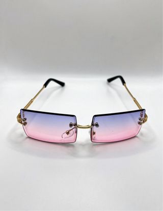 Gafas de sol con montura dorada y lentes degradado en tonos rosa y morado. Son gafas elegantes y modernas. - Lentes de color degradado. - Montura dorada. - Diseño original.