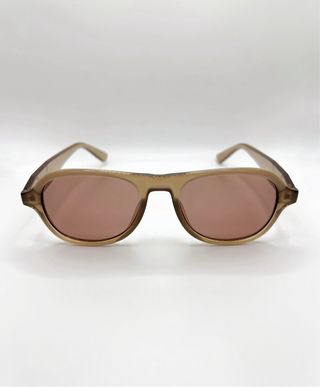 Gafas de sol de color beige y marrón. Son gafas de sol con montura elegante y lentes de color marrón. - Lentes de color marrón. - Viene empaquetado. - Su caja original con gamuza (trapo), manual y bolso.