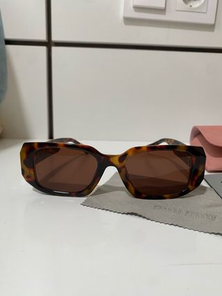 Gafas de sol Miu Miu, montura marrón con estampado multicolor. Se incluyen las gafas y su estuche original. - Diseño elegante y sofisticado. - Montura en excelente estado. - Ligeras y cómodas.