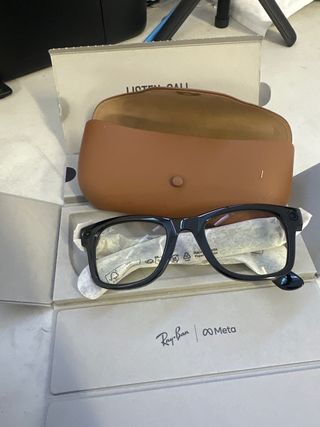 Gafas de sol Ray-Ban Meta Headliner en color negro. Cristales polarizados. Incluyen funda de cuero marrón. Modelo muy bonito. Se escuchan genial y funcionan correctamente, tienen muy poco uso están prácticamente nuevas. - Diseño moderno y elegante. - Montura negra. - Funda de cuero marrón con logo Ray-Ban.