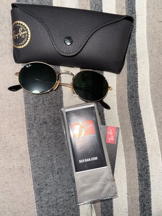 100x100 Originales, Gafas de sol Ray-Ban, un accesorio atemporal. Son unas gafas elegantes y en muy buen estado. Están impecables, ni un solo rasguño, mejor ver en persona. - Lentes de color verde. - Montura negra con detalles dorados.