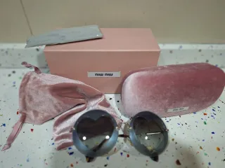 Gafas de sol Miu Miu con un diseño único en forma de corazón. - Montura en tonos dorados y marrones. - Incluye funda protectora de terciopelo. - Viene con su caja original y paño de limpieza. Cristales y montura perfectos.