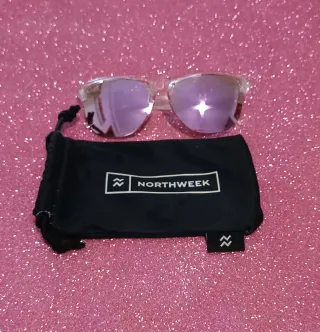 Gafas de sol con cristal rosado, montura transparente. - Incluye funda protectora negra con el logo de Northweek. Muy buen estado. *Solo por envío.