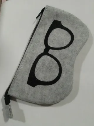 Nueva Funda de estilo fieltro con diseño de gafas en color negro, con cremallera (en otro anuncio está el mismo a conjunto en color rosa). Recogida en Rubí y envíos.