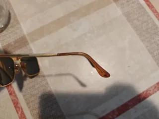 Gafas de sol Ray-Ban Aviator vintage años mediados de los 90, con montura dorada y lentes verdes. Se incluyen las gafas y su estuche original. Están en buen estado. - Lentes de color verde. - Montura dorada. - Estuche original incluido.