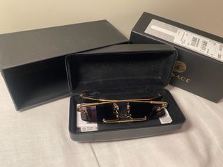 Elegantes gafas de sol Versace con montura dorada y lentes marrones. Incluyen su estuche original. - Montura metálica dorada. - Lentes con tonalidad marrón. - Incluye estuche rígido. - Incluye caja exterior.