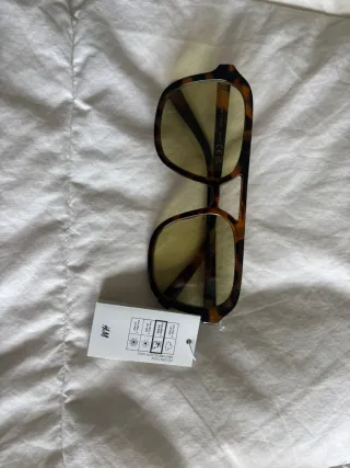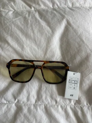 Gafas de sol con montura de carey y lentes amarillas. - Montura de acetato con estampado de carey. - Lentes con protección UV. - Diseño moderno y ligero.