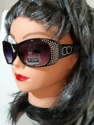 Gafas de sol súper elegantes en color negro con detalles plateados brillante en el frontal y en las patillas. Diseño moderno y femenino, perfectas para dar un toque glam a cualquier outfit. ✨ Montura negra con incrustaciones de strass ✨ Lentes degradadas oscuras ✨ Nuevas, sin usar (con etiqueta) ✨ Muy cómodas y ligeras Ideales para verano, playa, viajes o looks diarios con estilo.