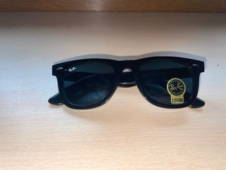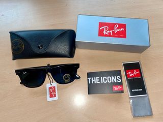 Vendo gafas de sol Ray-Ban Wayfarer clásicas en color negro con lentes oscuras. Color negro brillante Lentes con logo Ray-Ban grabado Incluye caja original, funda, gamuza y folleto Estado: prácticamente nuevas, sin uso (como se ve en las fotos)