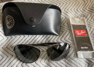 Se venden gafas de sol Ray-Ban con montura plateada y lentes oscuras. Incluyen su funda protectora original y paño de limpieza. Estan nuevas. Precio negociable - Montura metálica. - Lentes con protección UV. - Incluye funda y paño de microfibra.