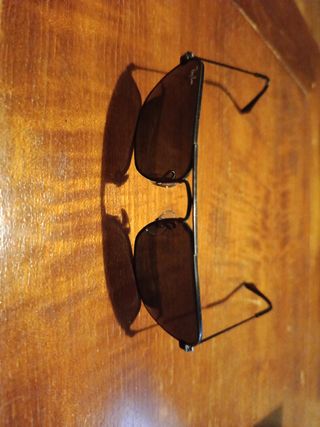 gafas de sol Ray-Ban Aviator originales, con montura dorada y lentes verdes clásicas. Modelo icónico, ligero y muy cómodo. 🔹 Estado: usadas, en buen estado general 🔹 Lentes en buen estado, sin rayones importantes 🔹 Montura metálica intacta 🔹 Almohadillas con signos de uso (ver fotos) 🔹 Incluye funda original Ray-Ban (con una pequeña grieta visible)