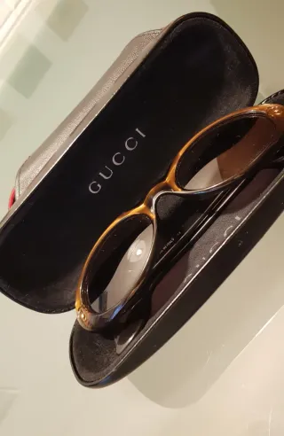Gafas de sol de la marca Gucci con un diseño elegante. - Montura en tonos marrones. - Incluye estuche original. Sólo venta en pedido mínimo de 60€