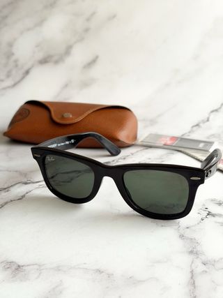 Gafas de sol Ray-Ban Wayfarer Classic color negro. Modelo: RB2140 Tamaño: 50-22 Incluye: - Funda de cuero original marrón. - Toallita original sin estrenar.