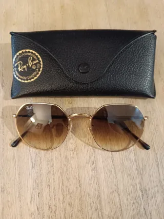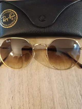 Gafas de sol Ray-Ban modelo Jack con montura dorada y lentes degradadas en tono marrón. - Montura metálica. - Lentes con protección UV.
