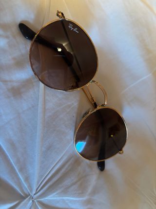 Gafas de sol con montura dorada y lentes marrones. Unisex Round Metal 50-21 Varios usos, sin defectos en la lente Lente clara en tonos degradados. - Diseño redondo. - Logo de Ray-Ban en la lente izquierda. 👓😎🥰