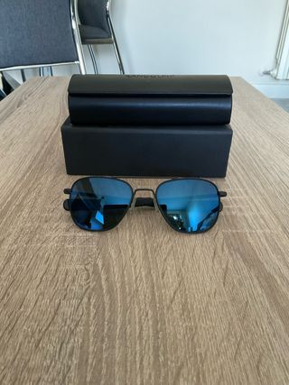 Vendo Gafas de sol Randolph modelo Aviator con montura negro mate y lentes Cobalt polarizadas. Mod. AF245 Talla 55. -Lleva todo el set: caja cartón con imán, funda rígida de piel, funda microfibra y papeles. -Nuevas, solo puestas para probar el día que me las compré. Colecciono Randolph y por eso no las utilizo. -La lente Cobalt SkyRx combina diseño militar, fabricación artesanal estadounidense y tecnología óptica avanzada. Sus lentes con recubrimiento Vector™ reducen el resplandor rebotado, mientras el Blue Wave™ protege de la luz azul. Incluyen antirreflejante interno azulado para bloquear reflejos. -Nuevas en tienda valen 359€