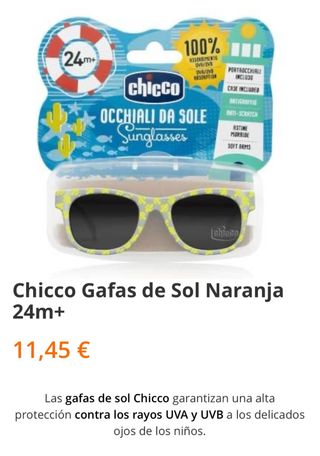 Gafas de sol Chicco para niño y niña , ideales para proteger sus ojos. 3 euros cada una REGALO cartera con compra - Montura de color rojo. - Lentes de color negro. - Incluye estuche protector.