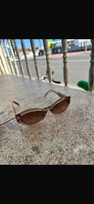Gafas de sol Dior - Montura en color marrón. - Detalles metálicos en color plateado. - Lentes con tinte oscuro. Las gafas están en perfecto estado; como nuevas. Sin embargo, la funda original se ha cuarteado (ver fotos adjuntas)