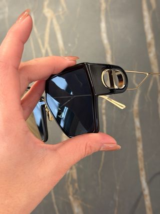 Gafas de sol Dior estilo diadema, muy cómodas y con un diseño moderno. Me encantan, pero al final casi no las uso porque suelo llevar lentillas de sol graduadas. Están en excelente estado, perfectas para quien busque un toque elegante y diferente. - Montura de color negro brillante. - Detalle del logo CD en dorado en las patillas.