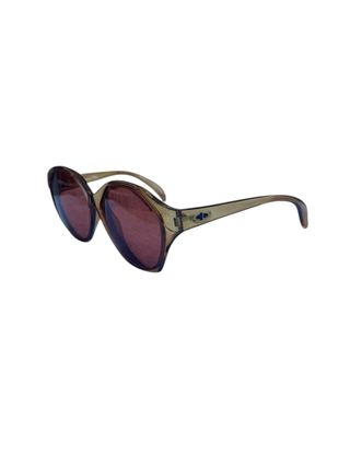 Gafas de sol vintage de la marca Yves Saint Laurent. Un accesorio único para añadir un toque de estilo. - Montura de color marrón translúcido. - Lentes de tono morado. - Diseño de gran tamaño.